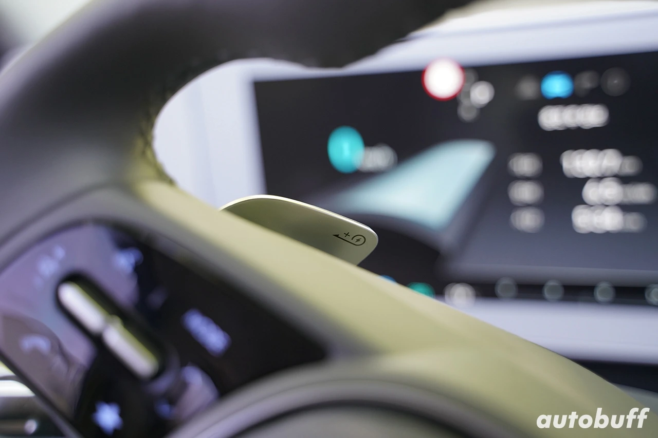 또한 스티어링 휠 뒤에 위치한 패들시프트를 활용하면 아이오닉 5를 더욱 재미있게 운전할 수 있다. 패들시프트는 상황에 따라 회생제동 레벨을 조절할 수 있고, 오른쪽을 길게 누르면 오토모드, 왼쪽을 길게 누르면 회생제동이 최대로 걸리며, 완전 정차까지 가능하다. 또한 회생제동 레벨 0에서 왼쪽을 한번 더 누르면 원 페달 드라이브 기능인 i-페달이 활성화된다. 가속 페달을 밟는 만큼 가속하고, 발을 떼면 자동으로 감속되는 i-페달은 처음에는 굉장히 어색하지만, 적응 후 여유롭게 운전하면 브레이크 페달 조작 없이 가속 페달만으로 충분히 운행이 가능하다.