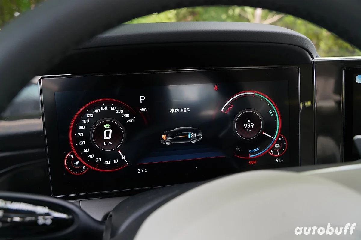 드라이브 모드는 에코, 컴포트, 스포츠로 총 세 가지인데, 모드를 변경해 놓아도 재시동 시에 에코모드로 자동 설정된다. 에코모드와 컴포트 모드는 주행 질감에 큰 차이가 없으며, 스포츠 모드는 스티어링 휠이 묵직해지며, 일반 내연기관 모델과 동일하게 엔진 작동 시 RPM을 높게 유지하는 세팅이다. 덕분에 가속페달을 밟으면 엔진이 조금 더 빠르게 반응하는데, 가속페달에서 발을 떼면 바로 EV 모드로 전환되어 연료 소모를 줄여준다.