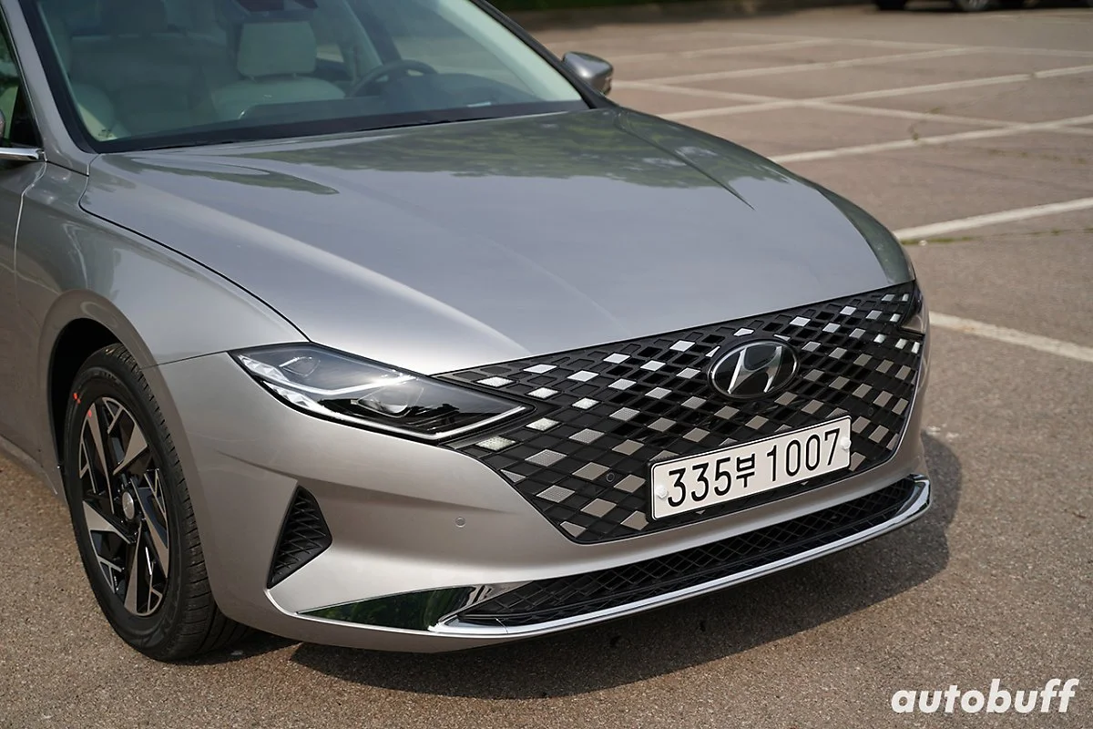 이번에 준비된 2021년형 그랜저 시승차는 그랜저 하이브리드 르블랑 모델이다. 보통 가장 상품성이 뛰어난 풀옵션 모델을 시승차로 사용하는데, 중하위 트림의 시승차를 체험해 볼 수 있는 좋은 기회였다. 연식변경 모델인 만큼 디자인의 변화는 없다. 전면의 파라메트릭 주얼 패턴의 라디에이터 그릴과 히든 타입의 주간주행등의 독특한 인상이 그랜저의 존재감을 강조한다.