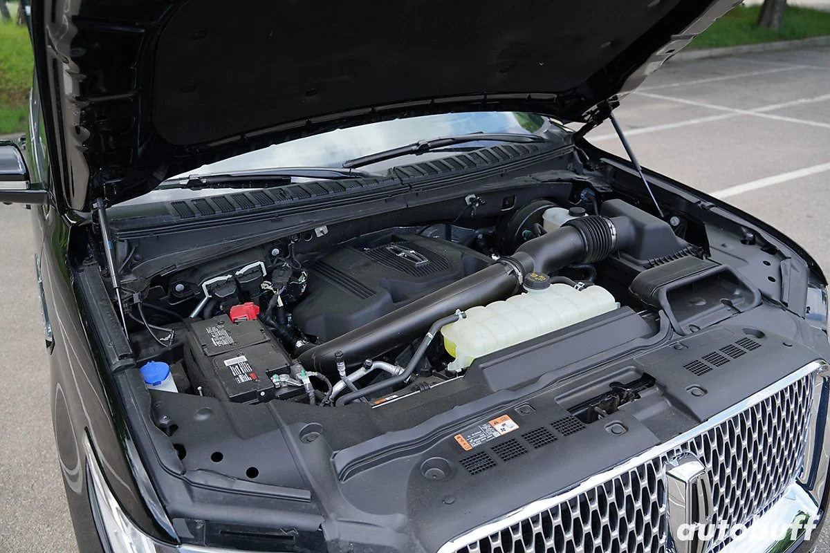 네비게이터의 파워트레인은 6기통 3.5리터 가솔린 트윈 터보엔진과 10단 자동변속기가 조합을 이룬다. 경쟁사의 풀사이즈 SUV에 적용되는 자연흡기 엔진에 비해 배기량은 낮지만, 과급기를 장착해 최고출력 457마력, 최대토크 71kgfm의 강력한 출력을 발휘한다. 덕분에 2.8톤의 거대한 덩치를 이끄는데 충분하고, 오히려 가속력은 충분히 차고 넘쳤다. 특히 6기통 엔진임에도 불구하고 엔진음과 배기음이 8기통 자연흡기 엔진에 견줄 수 있을 만큼 만족스러웠던 것이 기억에 남는다.