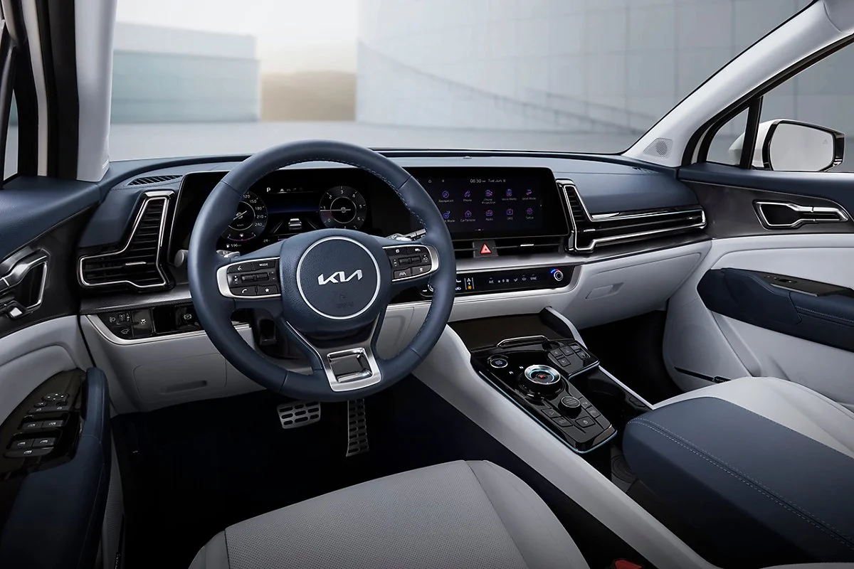 실내는 사용자 중심의 설계에 최첨단 사양과 독창적인 디자인 요소들을 가미해 고급스럽고 개성있는 공간으로 거듭났다. 기아는 신형 스포티지에 12.3인치 계기반과 12.3인치 인포테인먼트 시스템 화면을 부드럽게 곡면으로 연결한 파노라믹 커브드 디스플레이를 국내 준중형 SUV 최초로 적용했다. 파노라믹 커브드 디스플레이는 시야각에 따른 화면 왜곡을 줄여 정보를 더 쉽게 인지할 수 있게 해주며 운전자의 시선 분산을 최소화시킨다.