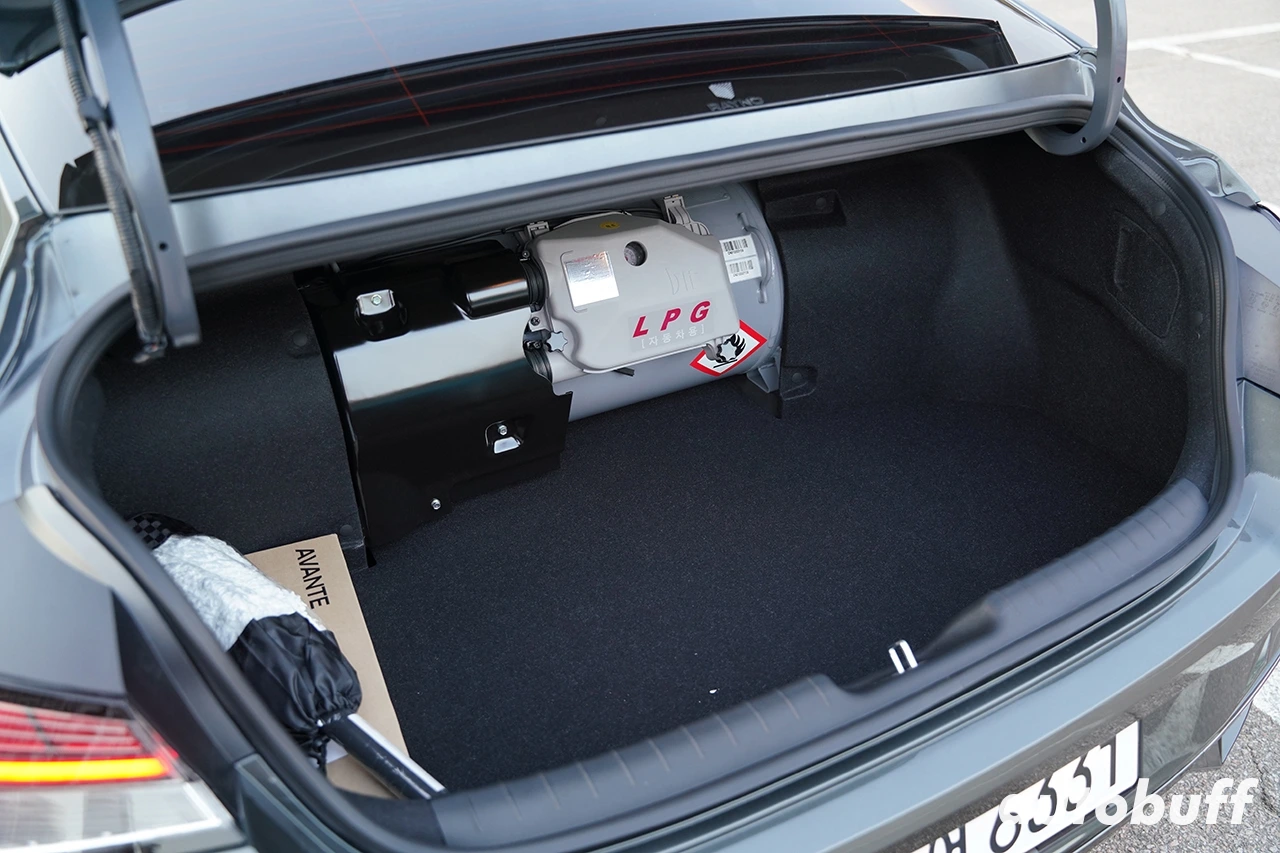 또한 LPG 탱크 용량으로 인한 트렁크 용량 크기가 줄었다. 최근 트렁크 하단에 도넛 탱크를 사용하는 모델이 늘고 있지만, 아반떼 LPi는 여전히 봄베형 탱크를 사용하고 있어 트렁크 용량이 가솔린 모델(474L)보다 165L 작은 310L다. 반면 탱크 용량은 53L(85% 충전 기준)로 가솔린 모델의 47L 연료탱크보다 조금 더 넉넉하다.