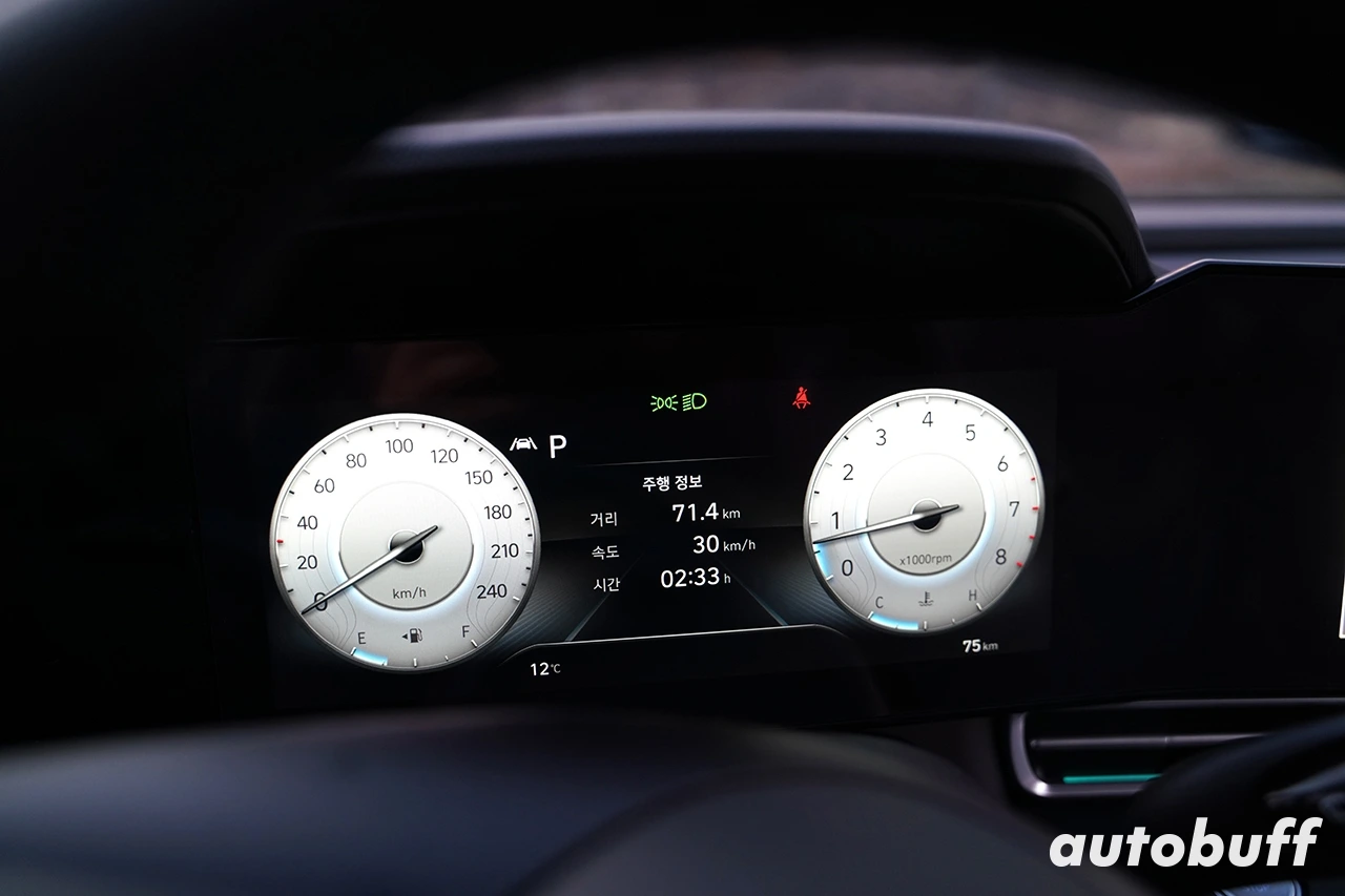 일반 가솔린 모델과 LPi 모델의 가장 큰 차이점은 계기판 구성이다. 전체 레이아웃은 동일하지만, 하단 좌측에 주행 가능 거리와 중앙에 순간 연비 표시창이 사라졌다. 또한 평균 연비도 평균 속도로 대체됐다. 이는 LPi 차량 특성 상 트립 연비를 구현할 수 없기 때문인데, 평소 트립 연비 정보를 확인하는 운전자에게는 아쉬운 부분이다.
