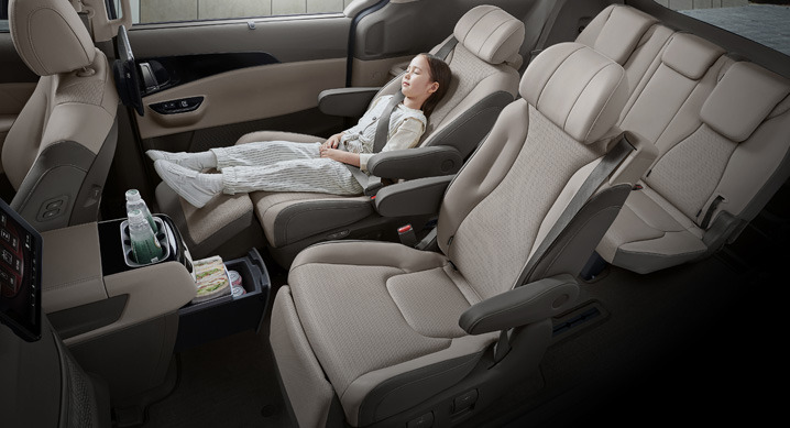 기아자동차는 국내 최고 수준의 여유로운 공간에 동승자를 위한 배려를 아낌없이 담아 4세대 카니발에 탑승한 모든 사람이 프리미엄 라운지에 머무르는 것 같은 편안함을 느낄 수 있도록 했다. 먼저 2열 좌석에는 탑승자에게 가장 편안한 자세를 제공하는 ‘프리미엄 릴렉션 시트’를 적용해 퍼스트 클래스 같은 최상의 고급감을 구현했다. (※ 7인승 전용)