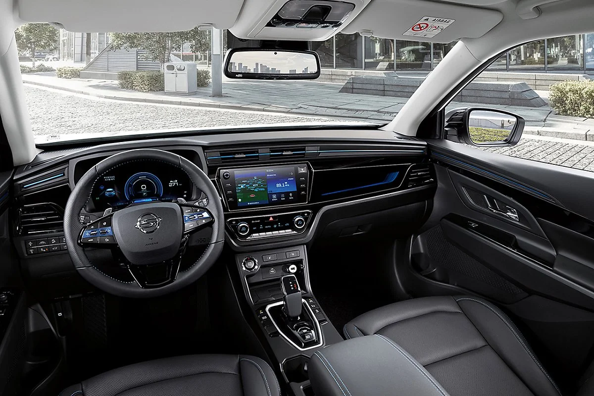 실내는 쌍용자동차의 감성이 느껴지는 블레이즈 콕핏 레이아웃을 활용했다. 12.3인치 풀 디지털 클러스터, 9인치 인포테인먼트 디스플레이, 엠비언트 라이트의 조합을 통해 하이테크하고 고급스러운 이미지를 완성했다. 또한 1열에는 통풍&히팅 시트가 적용됐고, 2열에 적용된 히팅 시트는 등받이 부분까지 열선이 확장됐고, 리클라이닝 각도를 최대 32.5도까지 조절할 수 있다.