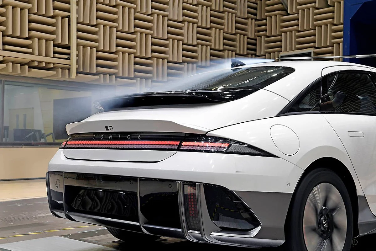 현대자동차는 현대디자인센터와 차량성능개발센터를 중심으로 아이오닉 6의 개발 초기단계부터 최고의 공력성능을 달성을 목표로 디자인과 엔지니어링을 진행했습니다. 아이오닉 6의 공기 흐름을 유연하게 만들어 주는 요소는 리어 스포일러, 외장형 액티브 에어 플랩, 휠 에어커튼, 휠 갭 리듀서, 박리 트랩, 휠 디플렉터 및 언더커버 형상 최적화 등 다양합니다.