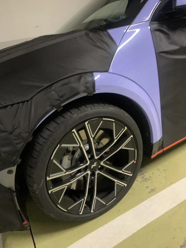 온라인 자동차 커뮤니티 보배드림에 게재된 아이오닉 5 N은 두꺼운 위장막으로 가려져 있지만, N 브랜드의 대표 색상인 퍼포먼스 블루 색상의 차체를 통해 아이오닉 5 N임을 확인할 수 있습니다. 또한 전면 범퍼 중앙의 배터리 충전 램프도 기존 검은색에서 빨간색으로 변경됐고, 범퍼 양 끝단에 아반떼 N 과 유사한 형태의 블랙 가니시가 적용된 것으로 보입니다.