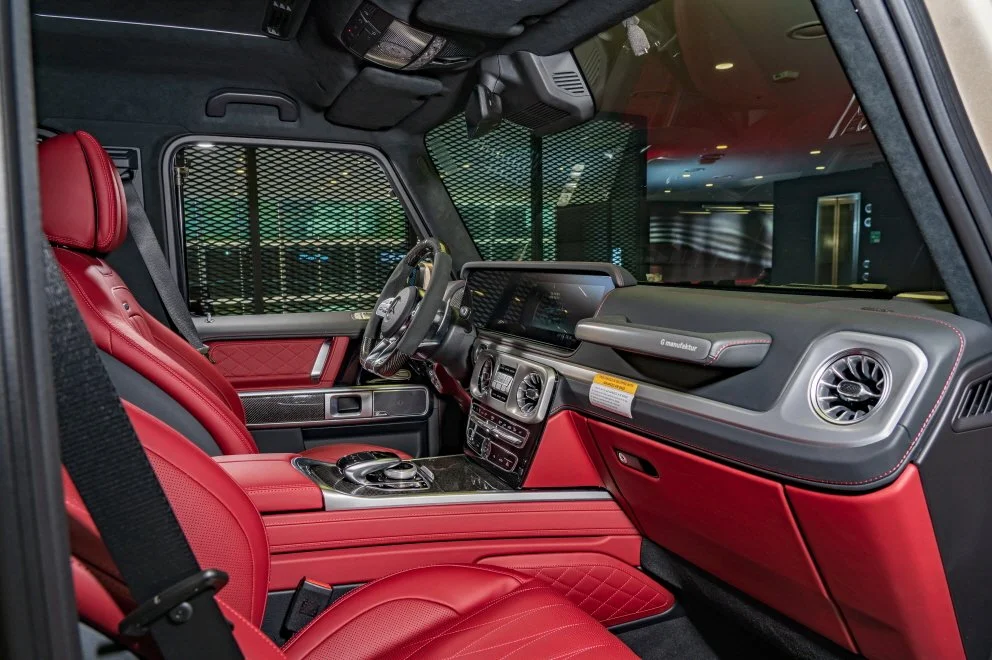 또한 내장재로 최고급 나파 가죽을 배치해 주행 중 최상의 편안함과 자유로움을 선사한다. AMG 퍼포먼스 스티어링 휠에 카본 및 다이나미카가 적용돼 한층 더 견고하고 품격 있는 G 63만의 감성도 느낄 수 있다. 뿐만 아니라 22인치 AMG 5 스포크 단조 휠로 역동적인 포인트를 살렸다.