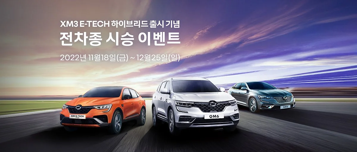 르노코리아는 합리적 이율의 할부 상품 운용과 함께 뛰어난 유지비를 자랑하는 QM6 LPe, 합리적인 사양과 가격을 갖춘 SM6 필 등 경제성이 뛰어난 모델들을 함께 운영하고 있다. 특히 최근 출시한 XM3 E-Tech 하이브리드 모델은 최대 75%까지 전기차 모드 주행이 가능해 뛰어난 효율과 경제성을 자랑한다.