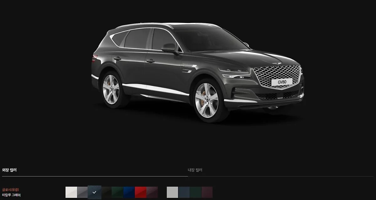 2023년형 GV80은 새로운 외장 컬러가 추가되고, 일부 색상은 단종됐다. 유광 컬러 중 카본 메탈 색상이 단종됐고, 무광 멜버른 그레이 색상도 함께 단종됐다. 새롭게 추가된 색상은 유광 마칼루 그레이, 무광 마칼루 그레이다. 2023년형 GV80은 유광 8개, 무광 4개까지 총 12가지 외장 색상을 제공한다.