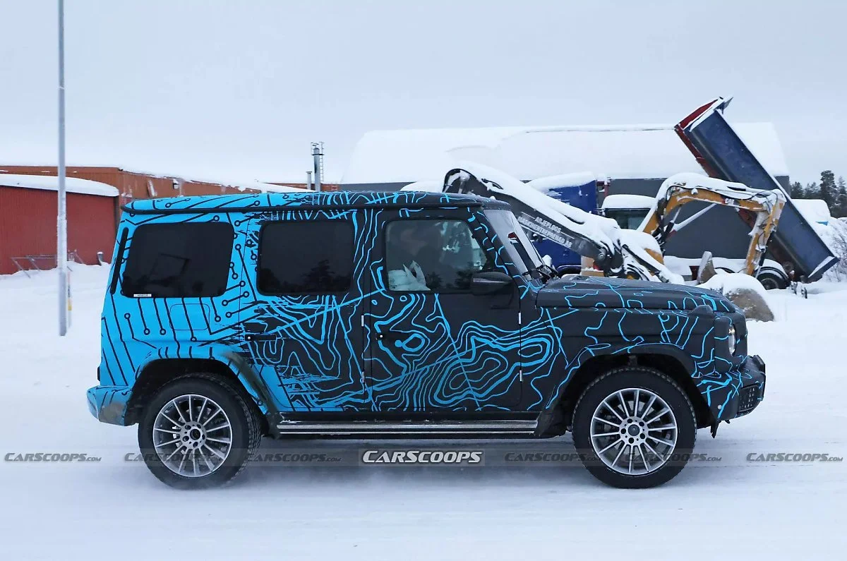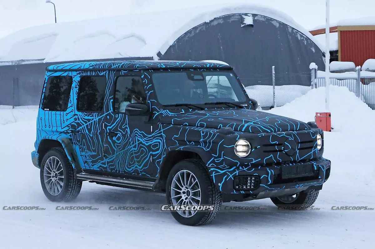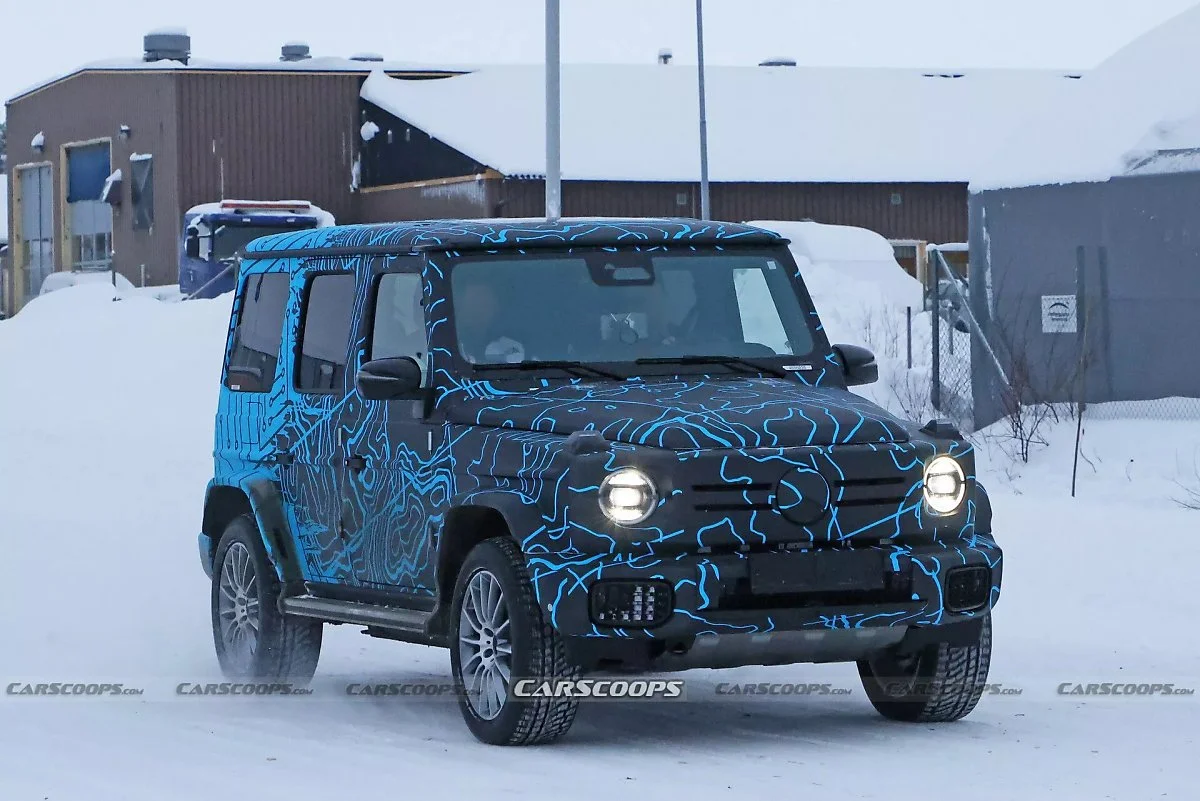 메르세데스 벤츠 EQG 스파이샷이 포착됐다. 해외 자동차 전문매체 카스쿱스(Carscoops)에 게재된 EQG 스파이샷은 별도의 위장막 없이 위장 필름만 부착된 것이 특징이다. 덕분에 차량의 전반적인 디자인을 충분히 확인할 수 있다.