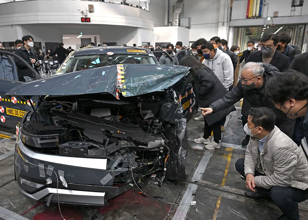 전기차 화재 안전성이 논란이 되자, 현대차는 이를 의식했는지 지난 12일 전기차 충돌 안전 평가 현장을 공개했다. 이날 현대차가 공개한 충돌 테스트 항목은 미국 고속도로 안전보험협회(IIHS)의 평가 항목 중 하나인 64km/h, 40% 옵셋 충돌이다. 충돌 테스트는 아이오닉 5로 이어졌다.