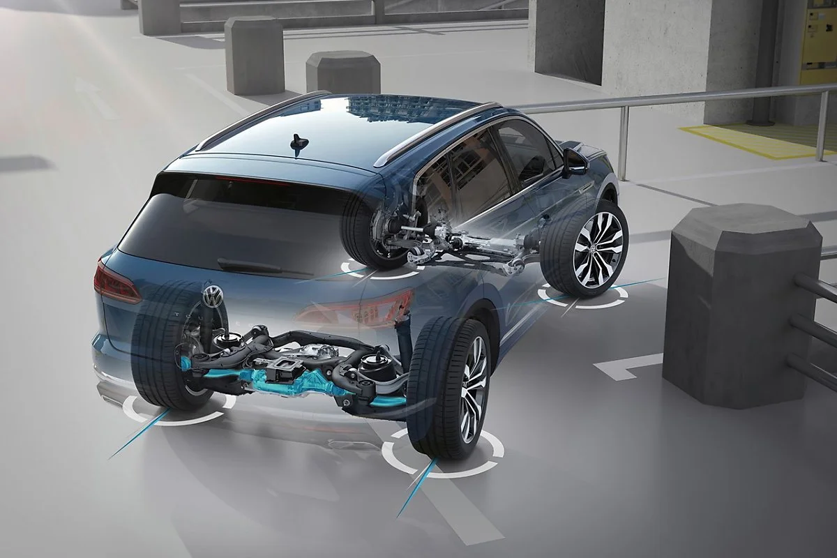 2023년형 투아렉은 프레스티지 모델부터 주행 모드에 따라 차체 높낮이를 최적화해 조절이 가능한 ‘에어 서스펜션’이 적용됐다. 이를 통해 오프로드 특성을 더욱 극대화함과 동시에 최상의 안락함을 유지해 온로드와 오프로드를 아우르는 편안한 승차감을 제공한다.