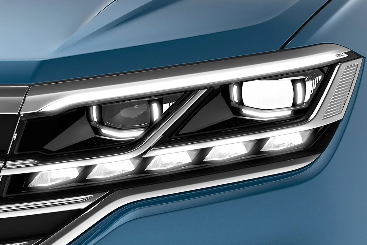 전면부는 금속을 가공한 듯한 크롬 그릴이 견고하면서도 당당한 인상을 강조하며, 프론트 그릴과 연결된 LED 매트릭스 헤드라이트는 폭스바겐만의 시그니처 프론트 디자인을 완성시킨다. 측면부는 볼륨감 넘치는 라인과 두드러진 프론트 휠 하우징으로 입체적이고, 후면부의 L자형 시그니처 라이트는 넓은 전폭을 강조하면서 강력한 존재감을 발산한다.