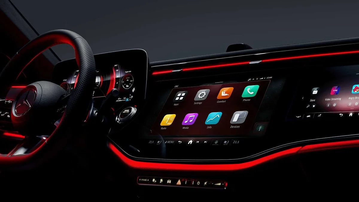 공개된 메르세데스-벤츠 E 클래스의 실내는 전동화 모델인 EQE의 모델과 유사한 모습이다. EQE의 하이퍼스크린과 달리 돌출형 디지털 클러스터가 적용됐으며, 중앙 인포테인먼트 디스플레이와 동승석 디스플레이는 하이퍼스크린과 비슷한 구성으로 E 클래스 풀체인지 모델에 처음 적용됐다.