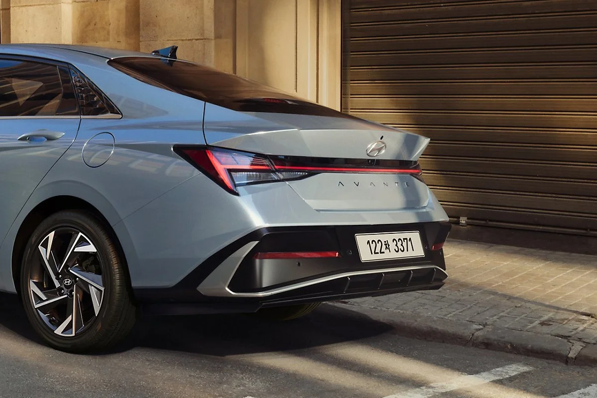 아반떼 페이스리프트는 기존 모델의 파라메트릭 다이나믹스 테마를 더욱 강조하고, 현대자동차의 최신 수평형 주간주행등을 적용해 낮고 와이드한 디자인을 완성했다. 눈꼬리가 올라간 기존 헤드램프와 달리 좌우로 길게 뻗은 헤드램프는 사각형태의 프로젝션 LED 램프로 변경됐다.