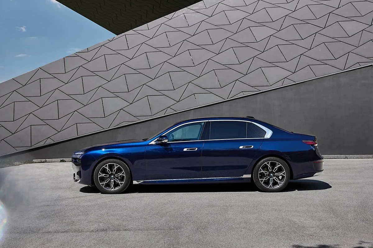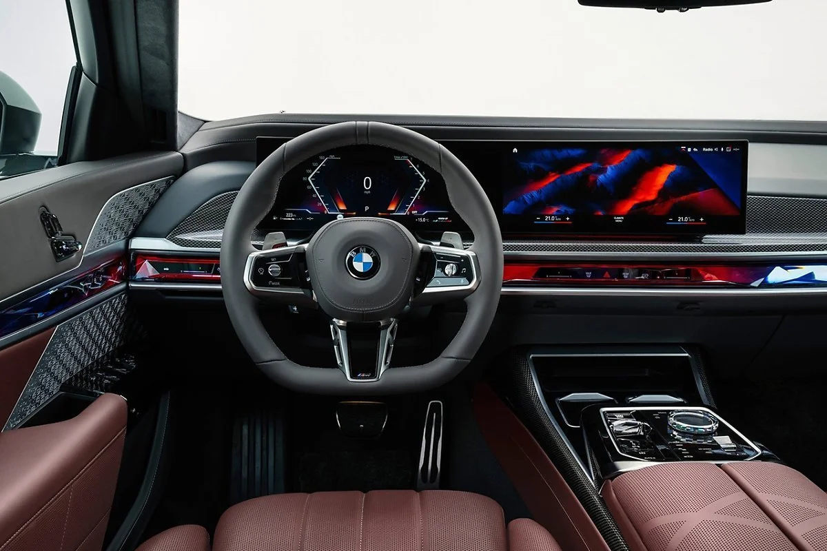 뉴 7시리즈의 전면은 분리형 헤드라이트와 BMW 크리스탈 헤드라이트 아이코닉 글로우를 통해 차별화된 존재감과 감성을 선사하며, 이전 세대 롱 휠베이스 모델 대비 길이 130mm, 너비 50mm, 높이 65mm가 증가한 차체를 통해 더욱 쾌적하고 여유로운 실내 공간을 확보한 것이 특징이다.
