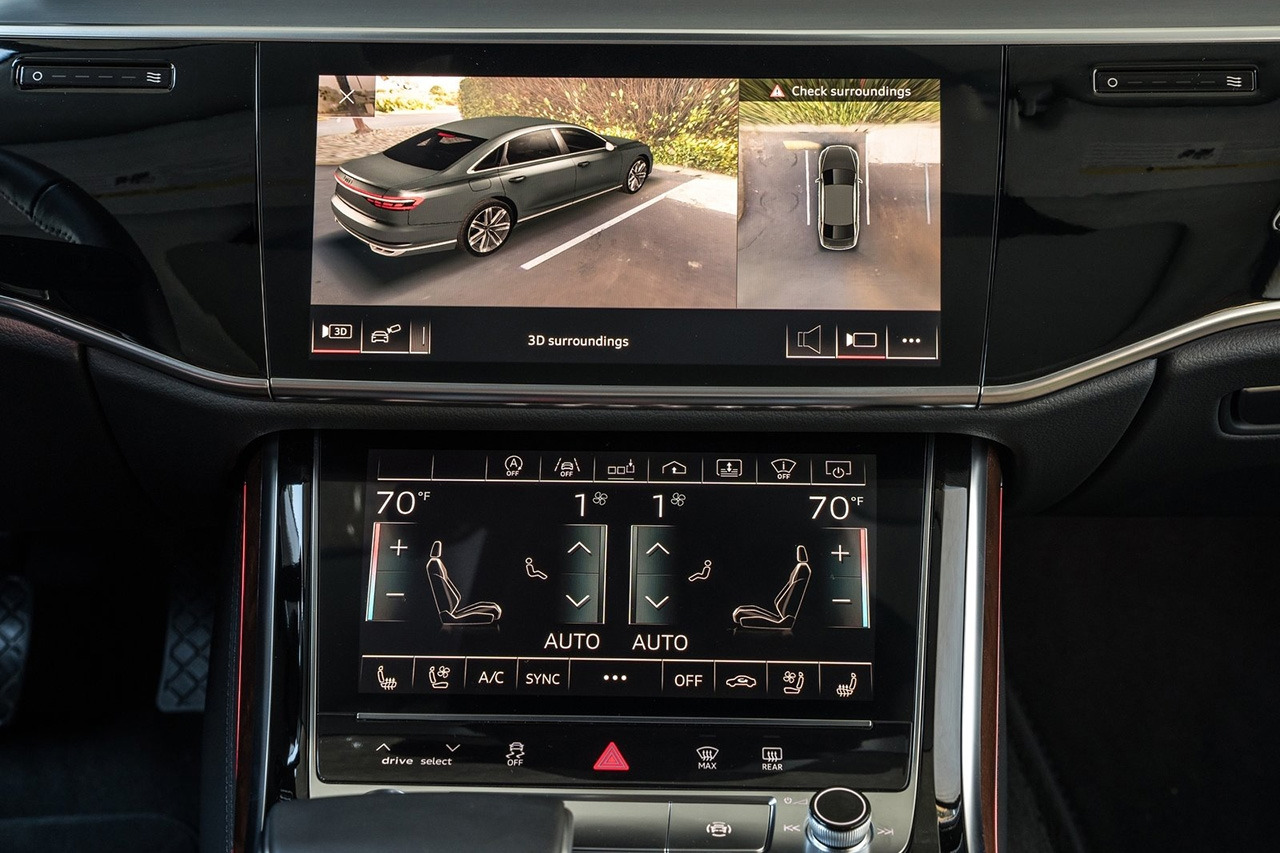 전/후방 주차 보조시스템 및 서라운드 뷰 디스플레이, 360° 카메라 등이 탑재되어 안전하고 편리한 주차를 도와준다. 또한, ‘프리센스 360°’, ‘사이드 어시스트’ 등 탑승자는 물론 보행자의 안전까지 생각하는 다양한 최첨단 안전 사양을 탑재했다. 뿐만 아니라, 아우디 A8 50 TDI 콰트로에는 자동으로 앞차와 거리를 유지하면서 속도를 조절하는 어댑티브 크루즈 컨트롤이, 아우디 A8 L 50 TDI 콰트로에는 ‘액티브 레인 어시스트’와 ‘어댑티브 크루즈 컨트롤’이 포함된 ‘어댑티브 크루즈 어시스트’기능이 각각 탑재되어 있다.
