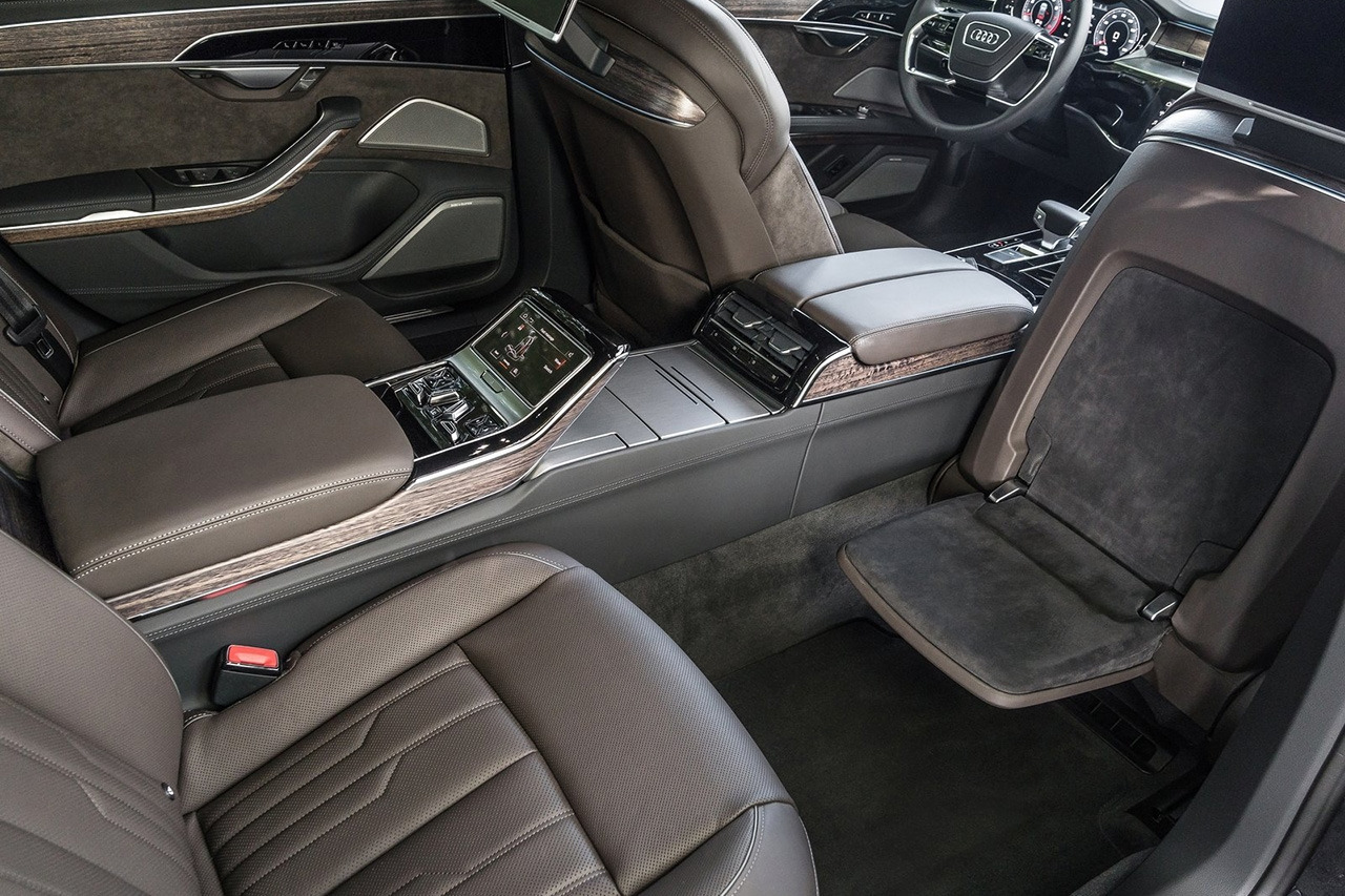 아우디 A8 L 50 TDI 콰트로의 실내는 이전 세대 대비 길어진 5,310mm의 전장과 3,128mm의 휠 베이스, 더욱 넓어진 전폭과 높아진 전고로 레그룸에서 헤드룸까지 넓고 여유 있는 실내 공간으로 안락함을 자랑한다.