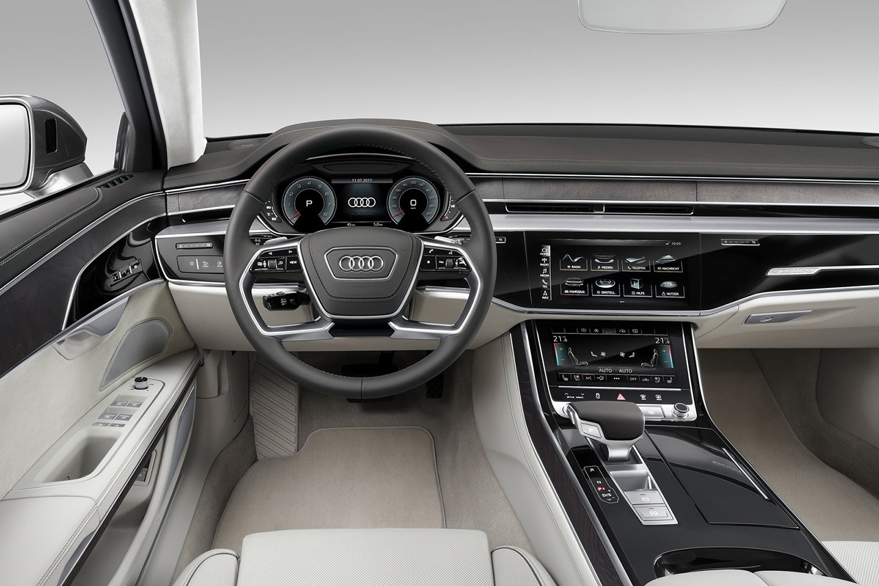 아우디 A8 50 TDI 콰트로와 아우디 A8 L 50 TDI 콰트로의 실내 디자인은 넓고 여유 있는 실내 공간으로 안락함을 자랑하며, 아우디의 섬세한 디자인 감각이 돋보인다. 블랙 헤드라이닝, 전동식 스티어링 휠 컬럼 및 시프트 패들과 열선이 포함된 더블 스포크 다기능 가죽 스티어링 휠, 발코나 가죽 컴포트 시트와 대시보드 상단, 센터콘솔 및 도어 암레스트에 나파 가죽 패키지가 적용되었다. 아우디 A8 50 TDI 콰트로에는 앞좌석 메모리, 통풍 및 마사지 시트와 앞좌석 암레스트 열선이, 아우디 A8 L 50 TDI 콰트로에는 전 좌석 메모리, 통풍 및 마사지 시트와 앞/뒷좌석 암레스트 열선이 각각 탑재되었다. 또한 햅틱 피드백 및 인테리어 알루미늄 버튼, 도어 엔트리 라이트, 앰비언트 라이트등을 기본으로 탑재해 세련되면서도 편안한 이동의 즐거움을 선사한다.