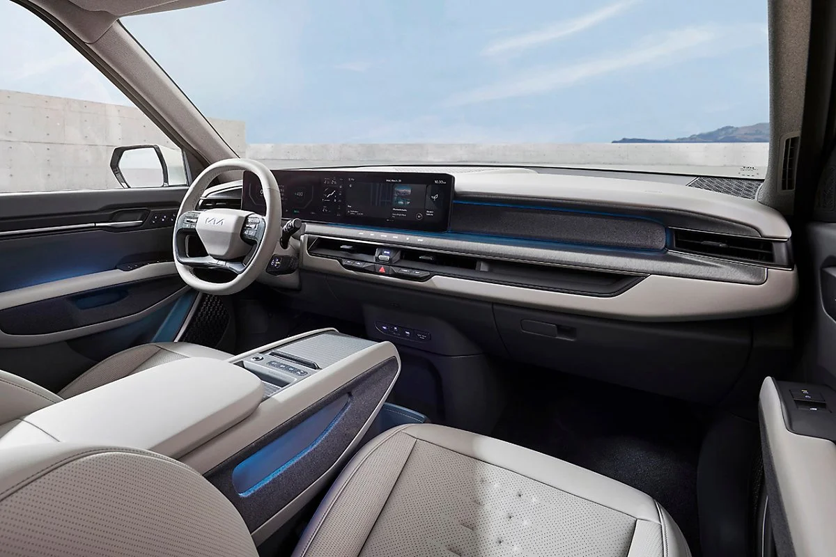 기아는 EV9에 각각 12.3인치의 디지털 클러스터 및 인포테인먼트 시스템 디스플레이와 5인치 공조 디스플레이를 한데 묶은 ‘파노라믹 와이드 디스플레이’를 최초로 적용했다. EV9은 세 개의 디스플레이가 매끄럽게 연결된 파노라믹 와이드 디스플레이를 통해 탑승객에게 필요한 정보를 효율적으로 전달하고 차량 조작 버튼을 최적 배치해 공간 활용도를 더욱 높였다.
