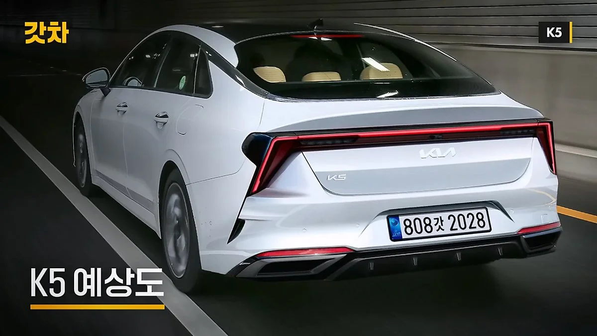 개된 기아 K5 후면 예상도는 최신 기아 K5 테스트카 스파이샷을 기반으로 제작됐다. 신차 예상도 유튜버 ‘갓차’가 공개한 예상도는 새롭게 변경된 K5 페이스리프트 모델의 테일램프 그래픽을 확인할 수 있다. 기아 K5의 테일램프는 플래그십 모델인 K8과 유사한 형태로 변경되며, 양 끝단에 세로형 라인이 추가된 것이 특징이다.