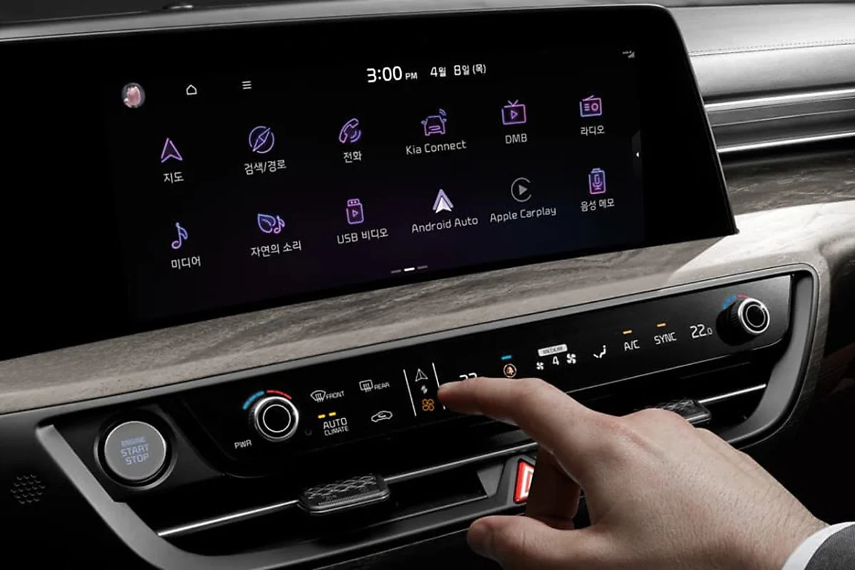 특히 최신 기아의 공조 조작 방식이었던 인포테인먼트/공조 전환 조작계 대비 사용성이 대폭 개선될 것으로 기대된다. 기존 전환 조작계는 하나의 터치 디스플레이를 버튼을 이용해 두 시스템을 전환해가며 사용해야 했다. 하이테크한 느낌은 있지만, 운전 중 사용하기에는 직관성이 떨어진다는 단점이 있었다.