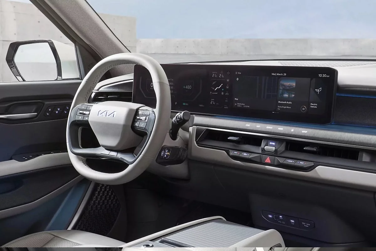 또한 현대차와 기아 모델 중 최초 3분할 디스플레이가 적용되어 소비자들의 눈길을 사로잡았다. EV9에 적용된 3분할 디스플레이는 12.3인치 클러스터와 12.3인치 인포테인먼트 디스플레이 그리고 여기에 5인치 디스플레이를 나란히 배치한 ‘파노라믹 와이드 디스플레이’다.