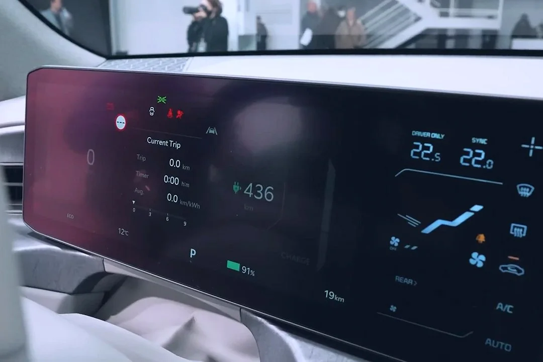 기아 EV9의 제원 역시 아직 공개되지 않았다. 하지만 EV9 리뷰 차량의 계기판을 자세히 살펴보면 주행거리를 예상할 수 있다. 해당 차량은 EV9 롱레인지 모델로 예상되며, 배터리 잔량 91%에서 트립상 주행가능 거리는 436km다. 배터리 100% 완충 시 주행거리 500km는 충분히 가능할 것으로 기대된다.