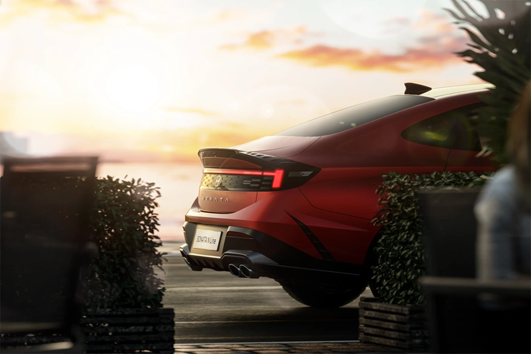 이날 함께 공개된 N 라인 모델은 기본 모델에 ▲확대된 프론트 범퍼 그릴 ▲19인치 전용 휠 ▲리어 스포일러 ▲듀얼 트윈 팁 머플러 등 스포티한 디테일을 더해 다이나믹한 주행감성을 한층 강조했다.
