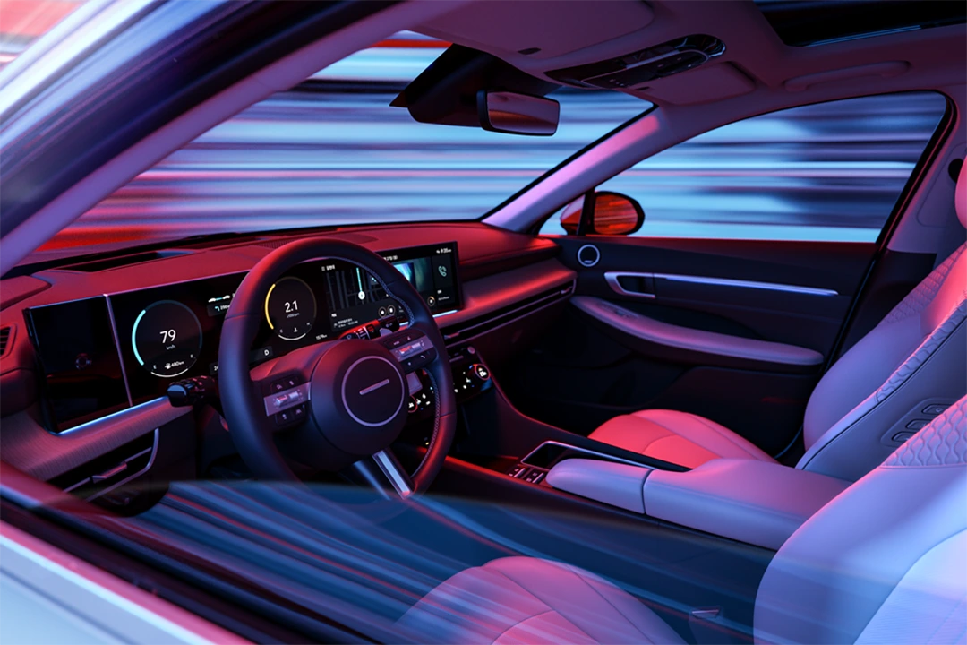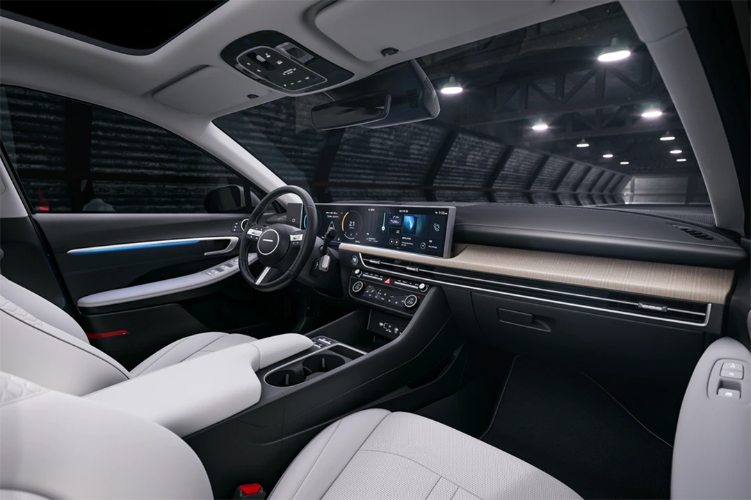 쏘나타 디 엣지 실내 역시 풀체인지급 변화를 거쳤다. 현대차는 각각 12.3인치의 디지털 클러스터와 인포테인먼트 시스템으로 구성된 디스플레이를 곡선의 형태로 연결한 ‘파노라믹 커브드 디스플레이’를 최초로 탑재해 운전자의 시인성과 고급감을 동시에 높였다.