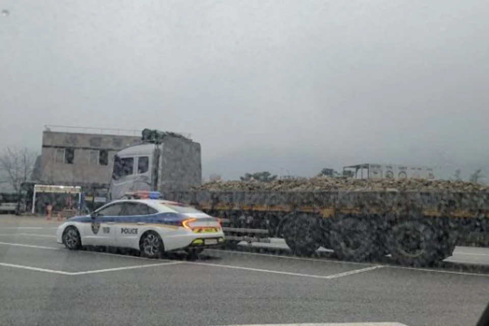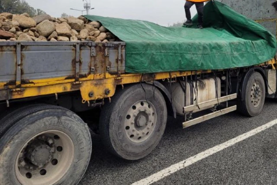 사진 속 화물차는 얼핏 봐도 수 톤이 넘을 것 같은 돌무더기를 싣고 있지만 어떠한 고정 장치도 없이 주행한 것으로 알려졌으며, 신고를 통해 출동한 경찰의 지시로 인해 겨우 덮개를 덮는 모습을 보여주었다.
