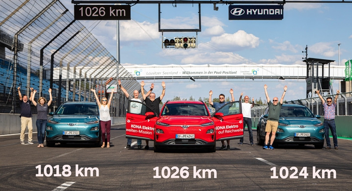 현대자동차의 소형 전기 SUV ‘코나 일렉트릭’이 한 번 충전으로 1,000km 이상을 주행하며 뛰어난 성능과 상품성을 입증했다. 현대자동차는 코나 일렉트릭 3대가 지난 7월 22~24일(현지시간) 독일에서 실시된 시험주행에서 각각 1,026km, 1,024.1km 그리고 1,018.7km의 주행거리를 달성했다고 14일 밝혔다. 시험에서 연비는 1kWh당 16km 안팎으로 나타나 국내 기준 공인 전비인 5.6 km/kWh를 훌쩍 뛰어넘었다.