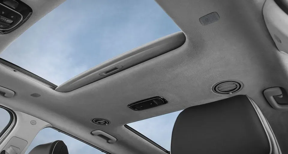 현행 싼타페는 파노라마 선루프가 적용되고 있다. 파노라마 선루프는 1열부터 2열까지 두 개의 통창으로 구성된 선루프로 뛰어난 개방감이 특징이다. 파노라마 선루프 역시 차체 강성 유지를 위한 프레임이 중간에 위치하나, 듀얼 와이드 선루프 대비 개방감이 뛰어난 것이 특징이다.