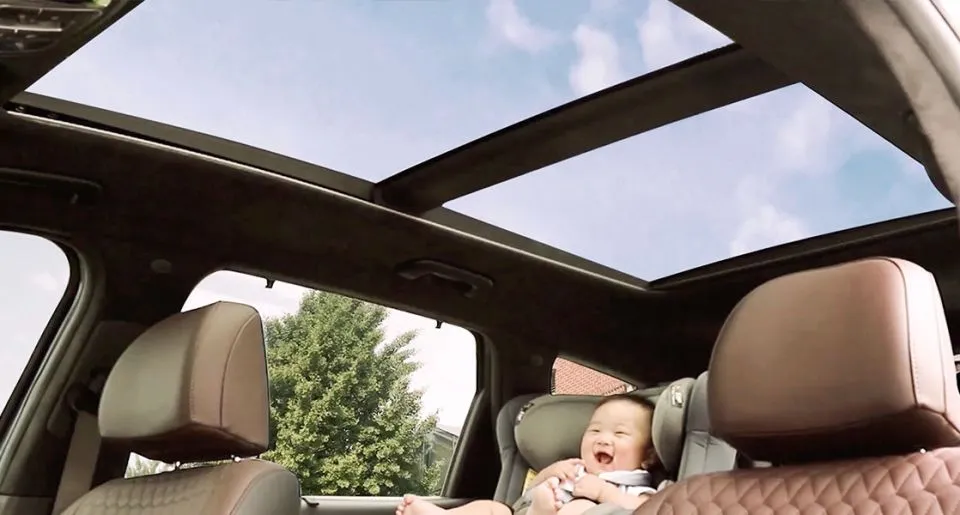 최근 포착된 싼타페 풀체인지 테스트카를 통해 신형 싼타페에 듀얼 와이드 선루프가 적용되는 것을 확인할 수 있다. 듀얼 와이드 선루프는 1열과 2열 선루프가 분리된 형태로 1열은 개폐형, 2열 루프는 고정형 유리가 적용된 선루프다.