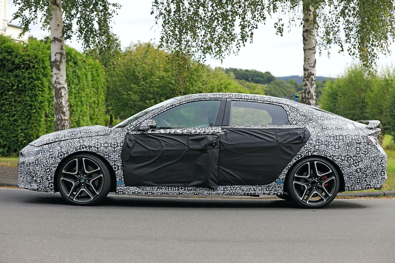 측면의 전체적인 디자인은 기존 아반떼, 아반떼 N 라인과 유사하다. 눈에 띄는 차이점은 19인치 휠과 붉은색 캘리퍼를 적용한 브레이크 시스템이다. 스파이샷에 포착된 모델은 벨로스터 N의 19인치 휠을 장착하고 있지만, 양산 모델에는 아반떼 N 전용 19인치 휠이 적용될 것으로 기대된다.