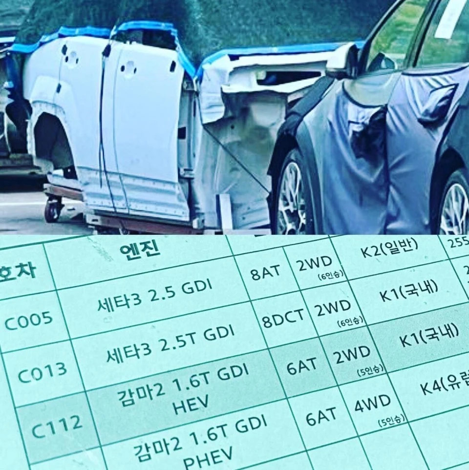 국내 자동차 유튜버 뻥태기 TV가 인스타그램(@jung_young_teak)에 게재한 싼타페 풀체인지 모델의 파워트레인 차트를 통해 일부 테스트카의 파워트레인 정보가 확인됐다. 해당 차트에 따르면 국내형 싼타페 풀체인지 모델에 2.5리터 가솔린 터보, 1.6리터 가솔린 터보 하이브리드 엔진으로 운영된다.
