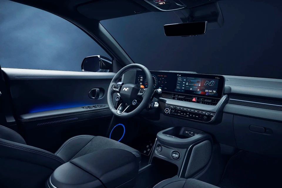 주행성능을 극대화할 수 있도록 새롭게 디자인된 N 전용 스티어링 휠은 혼 커버에 N 브랜드 로고가 적용됐으며 운전자가 원하는 대로 주행 모드를 각각 설정할 수 있는 2개의 N 버튼이 탑재됐다. 또한, N e-쉬프트, N 페달 기능에 활용되는 패들 쉬프터와 최대 10초 동안 출력을 증가시키는 NGB 버튼이 배치돼 조작 편의성을 높였다.