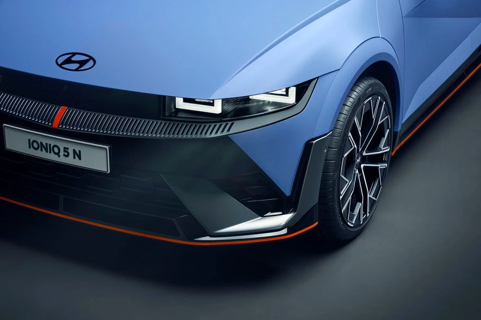 아이오닉 5 N의 전면부는 냉각 성능을 높이는 N 전용 라디에이터 그릴과 공력성능을 강화하는 에어커튼 및 에어 플랩이 적용됐으며, 블랙 색상의 N 전용 범퍼 커버와 범퍼 하단부를 낮게 가로지르는 립 스포일러가 장착돼 고성능 차량의 프로포션을 완성했다.
