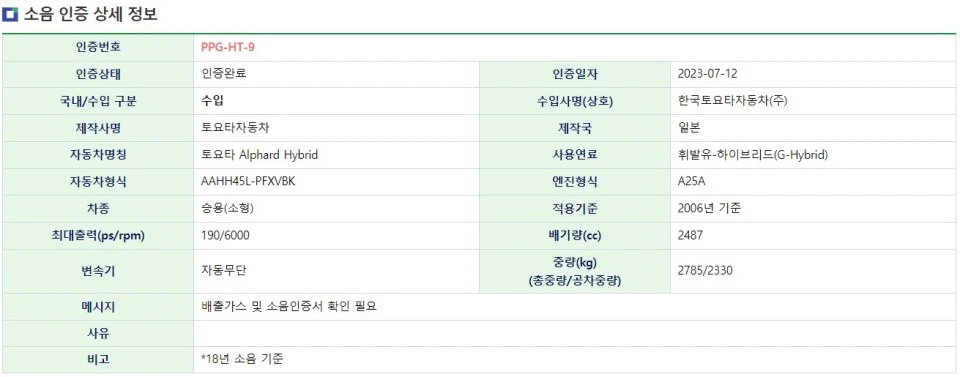 지난달 정식 공개된 토요타 럭셔리 미니밴 ‘알파드’가 국내 공식 출시된다. 환경부 자동차 배출가스 및 소음인증 시스템에 따르면 토요타 알파드 하이브리드의 국내 배출가스 및 소음 인증이 완료됐다.