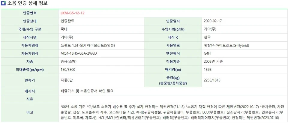 기아 쏘렌토 페이스리프트 모델의 출시가 다가오는 가운데 하이브리드 모델의 배출가스 및 소음 인증이 완료됐다. 쏘렌토 하이브리드는 현행 쏘렌토 모델 판매량 중 50%가 넘는 비중을 차지할 만큼 많은 인기를 끌고 있다.