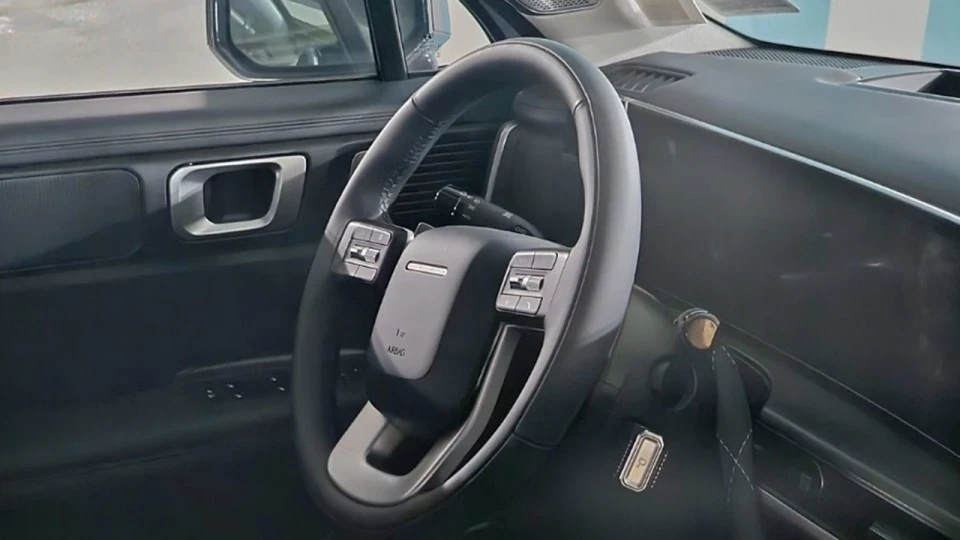 스티어링 휠 디자인을 자세히 살펴보면 신형 그랜저에 적용된 것과 전반적인 레이아웃은 유사하다. 다만 혼 커버 하단부가 분리된 4스포크 타입으로 그랜저 스티어링 휠 대비 디자인 완성도가 높다. 우측 하단에 적용된 전자식 칼럼 기어 레버 디자인은 동일하다.