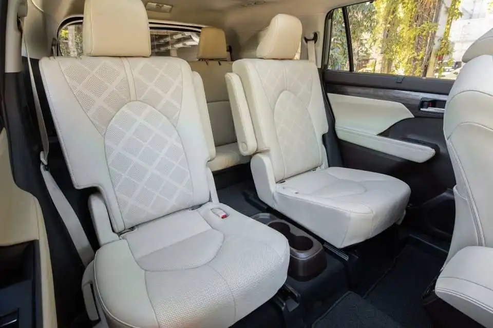 실내는 수평이 강조된 레이아웃을 기반으로 고급스러운 소재와 다양한 색상조합을 통해 프리미엄 SUV의 공간을 선사한다. 안락하고 쾌적한 3열 구성의 7인승 공간을 제공하는 하이랜더는 각 열의 시트를 계단식으로 배치하여 모든 탑승객에게 개방된 시야를 제공한다.