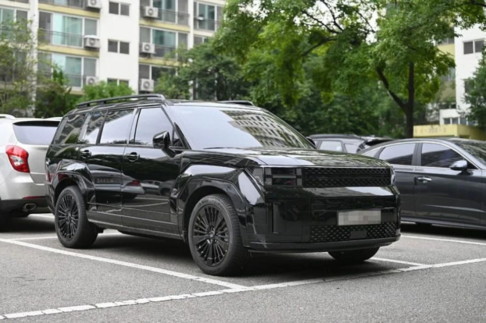 국내 아파트 단지 주차장에서 포착된 싼타페 풀체인지는 블랙 외장 컬러에 그릴, 휠 등 세부적인 요소에 무광 블랙 컬러가 적용됐다. 각진 디자인과 함께 전면부 파라메트릭 그릴, 범퍼 하단 가니시까지 모두 블랙으로 마감되어 한결 단정하고 강인한 모습이다.