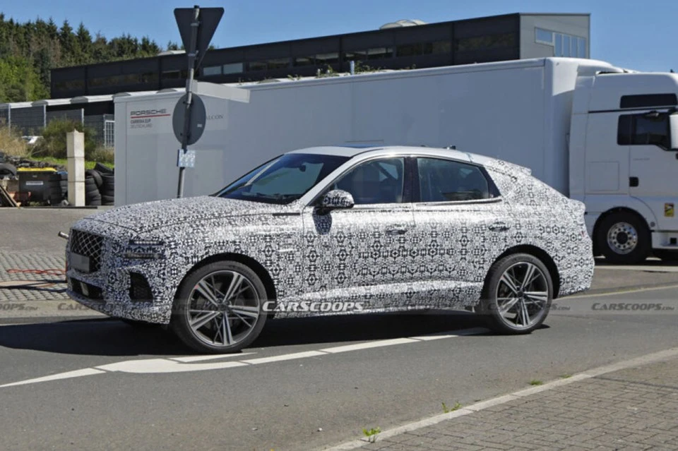제네시스 GV80 쿠페 테스트카가 외신에 포착됐다. GV80 쿠페는 올해 하반기 출시 예정인 GV80 페이스리프트 모델의 쿠페형 모델로 국내외 소비자들의 많은 관심을 받고 있는 제네시스 브랜드의 첫 번째 쿠페형 SUV 모델이다.