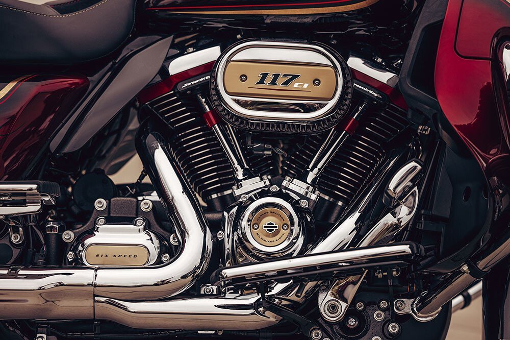 6종의 기념 모델에 적용된 색상인 '에어룸 레드'는 ‘집안의 가보’라는 의미이며 일반적인 붉은색이 아닌, 깊고 다채로운 색상의 입자들로 표현된 특수 도장이 특징입니다. 고급 가죽 소재인 '알칸타라'를 사용한 시트는 CVO 로드 글라이드 리미티드 애니버서리 모델에만 채용됐습니다.