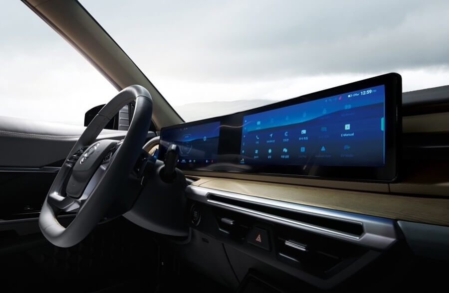 실내 인테리어는 토레스 콘셉트에 따라 슬림&와이드의 인체 공학적 설계로 운전자가 차별화된 UX를 체험할 수 있도록 디자인을 구현했으며, 디지털 클러스터와 내비게이션을 연결한 전면의 파노라마형 디스플레이는 다양한 정보 제공과 함께 시인성까지 향상시켰습니다.
