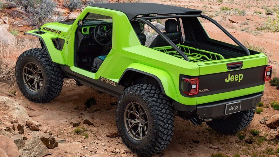 1981년도에 출시되었던 컴팩트 트럭, ‘지프 스크램블러(CJ-8)’와 지프 랭글러 루비콘을 결합한 콘셉트카입니다. 지프 스크램블러의 오픈-에어링 특징을 살린 스크램블러 392 콘셉트는 470마력의 강력한 힘과, 최대 470lb-ft의 토크를 제공하는 6.4리터 V8 HEMI 엔진을 장착했습니다. 가벼운 카본파이버 보디와 지프의 오프로드 라인업인 랭글러 및 글래디에이터를 위해 새롭게 개발한 아큐에어 에어 서스펜션 킷이 장착된 것이 특징입니다.