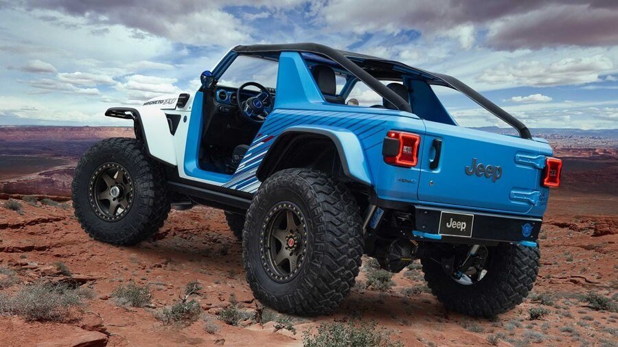 지프 랭글러 2도어 차체를 기반으로 한 순수 전기 콘셉트카로 지난 EJS에서 소개된 랭글러 매그니토 2.0에 이어 한단계 더 진화된 순수 전기 오프로더입니다. 지프 랭글러 매그니토는 무소음, 무공해이지만 그 어떤 지형지물도 돌파할 수 있는 오프로드 성능을 자랑합니다.