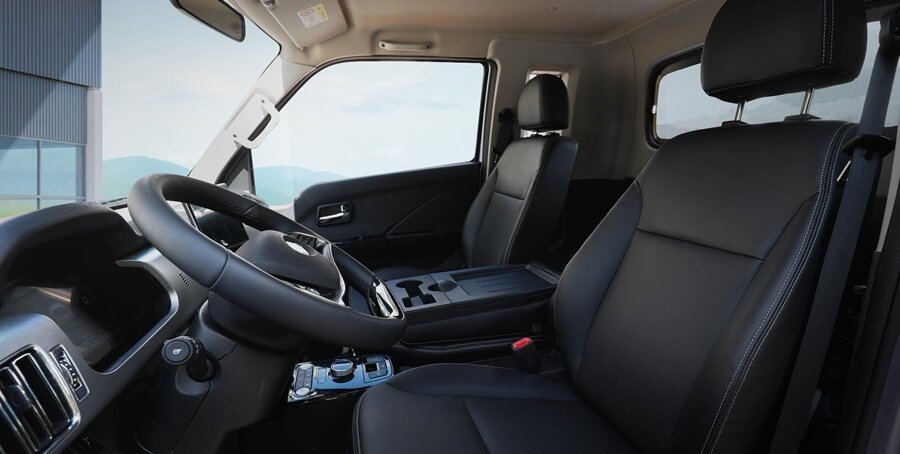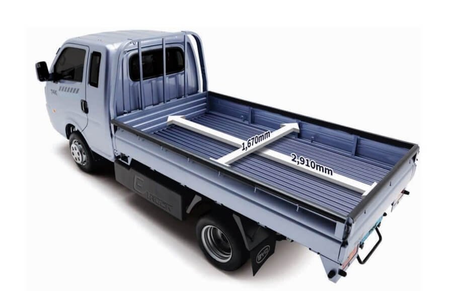 외관 디자인은 기본에 충실한 공기역학적인 케빈 디자인과 함께 안전성을 강화한 전면 프론트 범퍼로 부드러우면서도 강인한 인상을 더했습니다. 고강도 적재함 및 서스펜션으로 중량화물 적재 주행에서도 안정감을 더해줍니다. 이 밖에도 크루즈 컨트롤, 배터리 히팅시스템, 측면과 하단의 배터리 프로텍터, 동승석 에어백 등이 기본으로 적용되어, 운전자의 안전성도 확보했습니다.